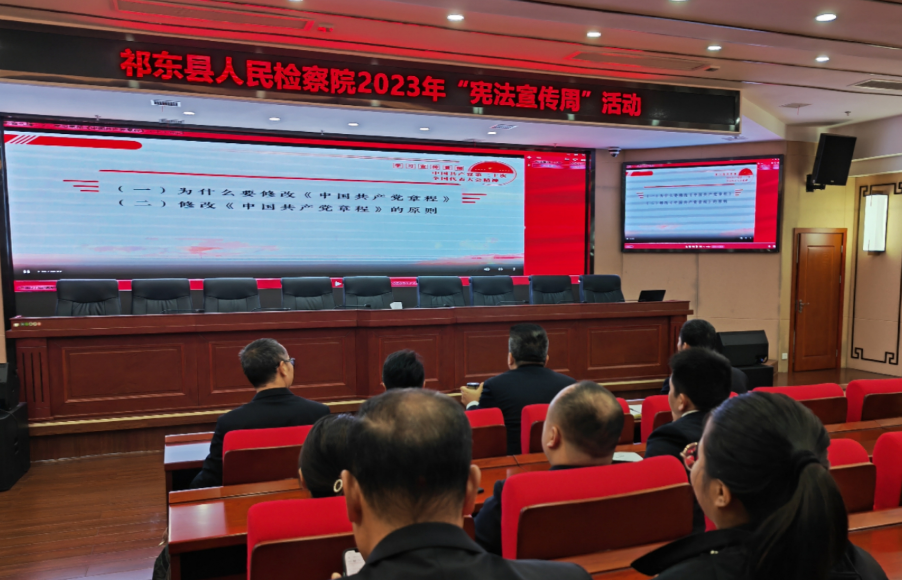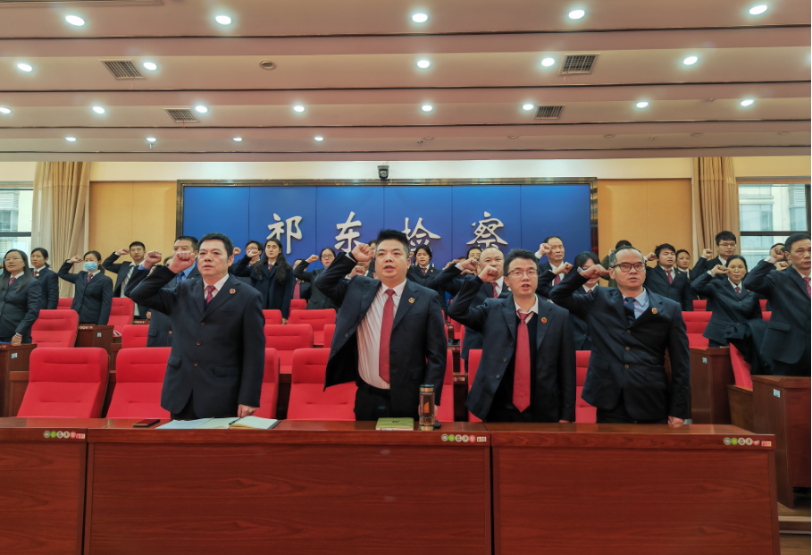 “我宣誓:忠于中华人民共和国宪法,维护宪法权威……”12月4日上午,正值第十个宪法宣传日,祁东县检察院组织全体检察人员在九楼会议室举行宪法宣誓仪式。