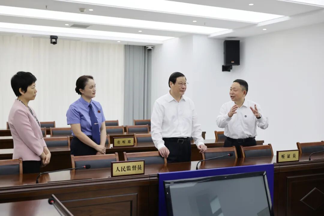 在重庆市检察院第一分院,应勇调研检察机关参与社会治理、推进检察信访工作法治化、检察听证等工作。应勇强调,检察机关是社会治理的重要法治力量,要坚持和发展新时代“枫桥经验”,依法全面履行法律监督职能,积极参与社会治安综合治理中心规范化建设,推进检察信访工作法治化,有效发挥法治对社会治理的规范和保障作用,为高质量发展营造良好社会环境、法治环境。检察听证是检察机关接受监督的重要方式,也是化解矛盾风险的有效手段。要重点加强对刑事不诉、民事行政申请监督等案件的公开听证,给检察权运行“加把锁”,以公开促公正赢公信。